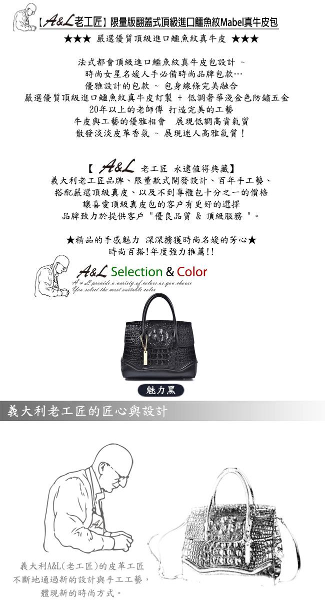 【AL老工匠】限量版翻蓋式頂級進口鱷魚紋Mabel真牛皮包(魅力黑)